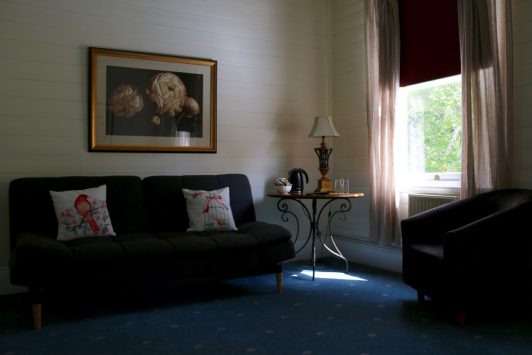 The individually decorated hotel rooms have period furniture, central heating and ensuite bathrooms. Some have French doors leading onto the verandah. All rooms have coffee and tea making facilities and hairdryers.